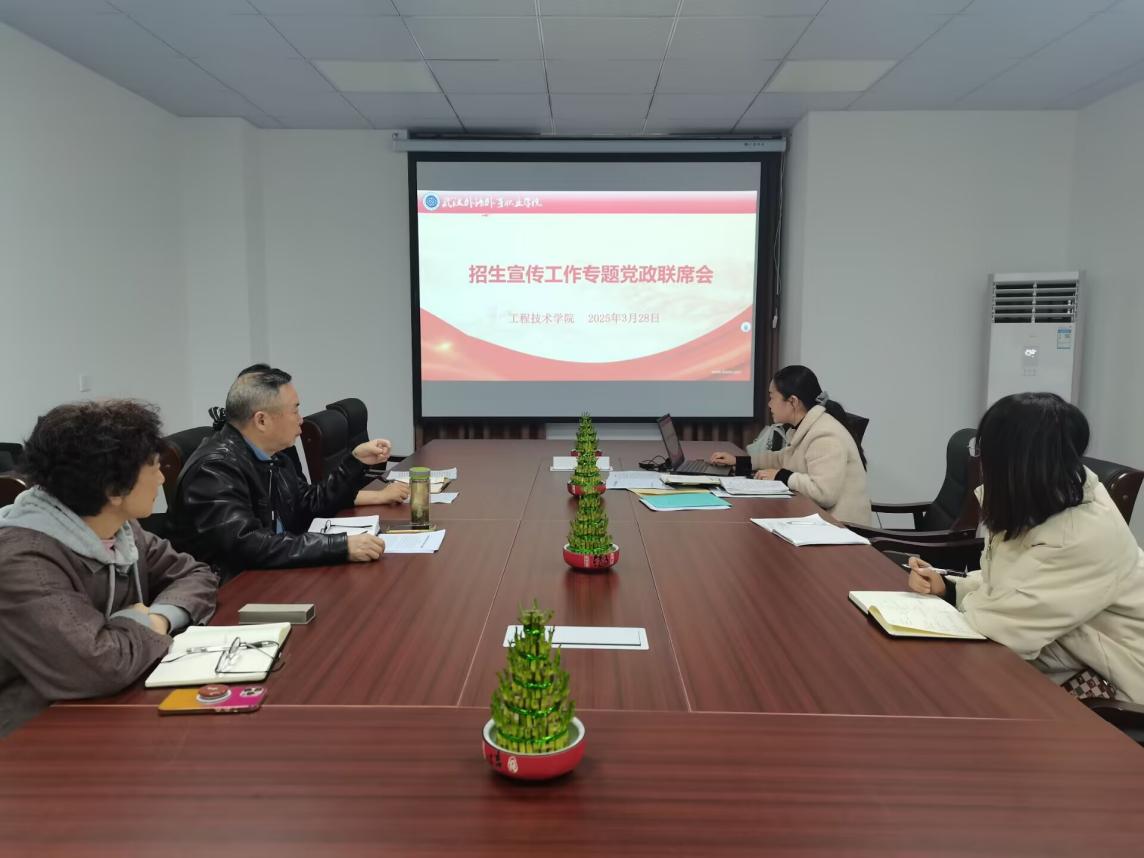 (通讯员 杨维)为进一步提升招生宣传工作的针对性与实效性,全面落实学校招生工作任务,工程技术学院积极行动,于3 月28 日和4 月3 日,先后组织召开招生宣传工作党政联席会与招生宣传工作专题部署会,为招生宣传工作的有序开展谋篇布局。