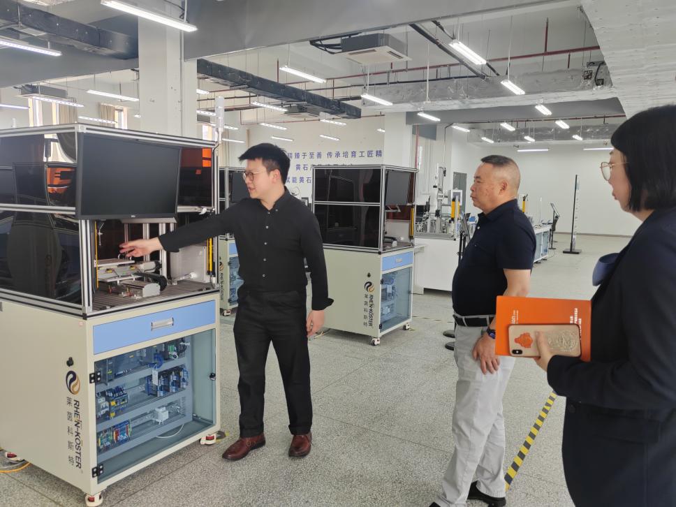 在莱茵科斯特公司杨丽萍经理的热情引导下,学院一行依次参观了多个实训中心,各实训中心均有经验丰富的任课教师现场讲解,详细介绍实训设备、教学模式与人才培养成果。