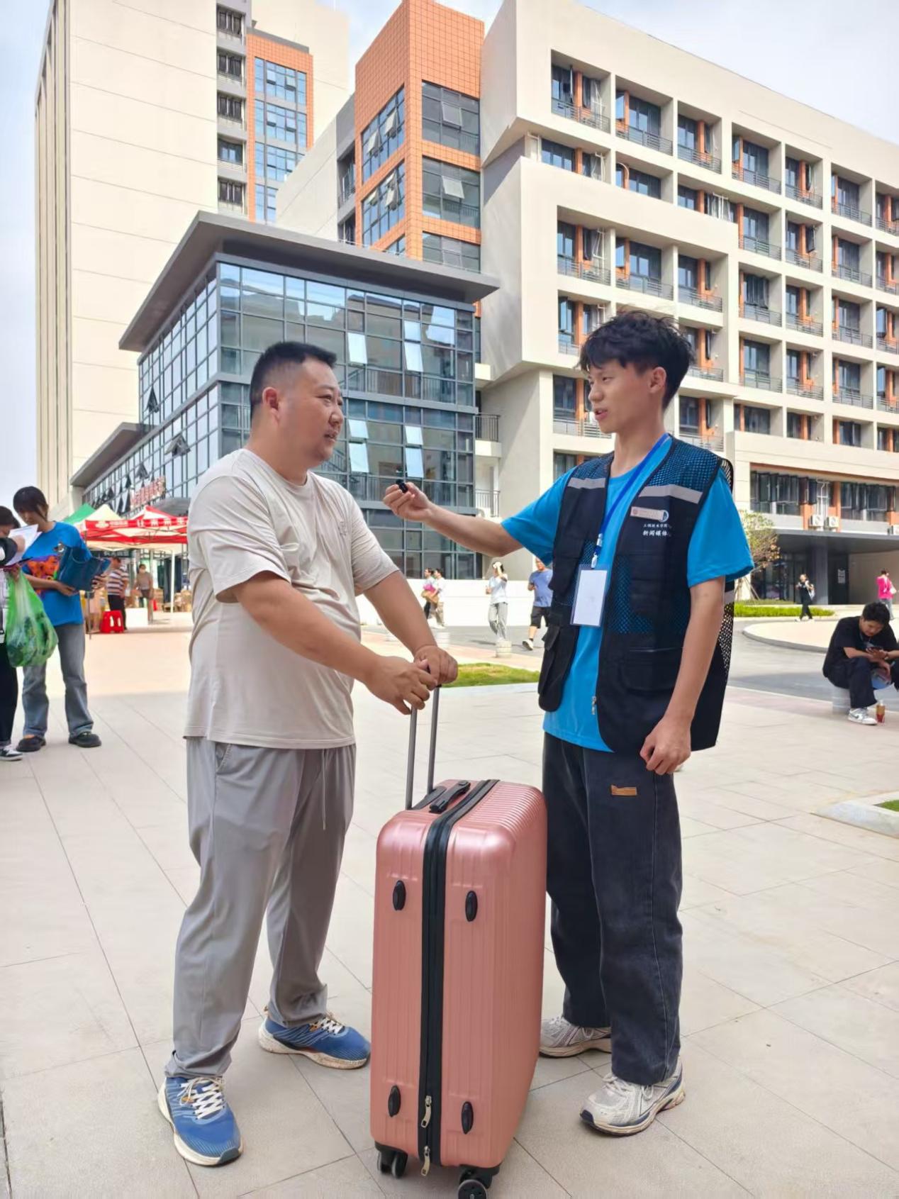刘爸爸也对志愿服务赞不绝口:“从校门口到宿舍楼,一路上都有志愿者引导,流程走得很顺畅,没怎么费劲。能看出来学校在迎新这件事上花了不少心思,让我们做家长的也更放心了。”