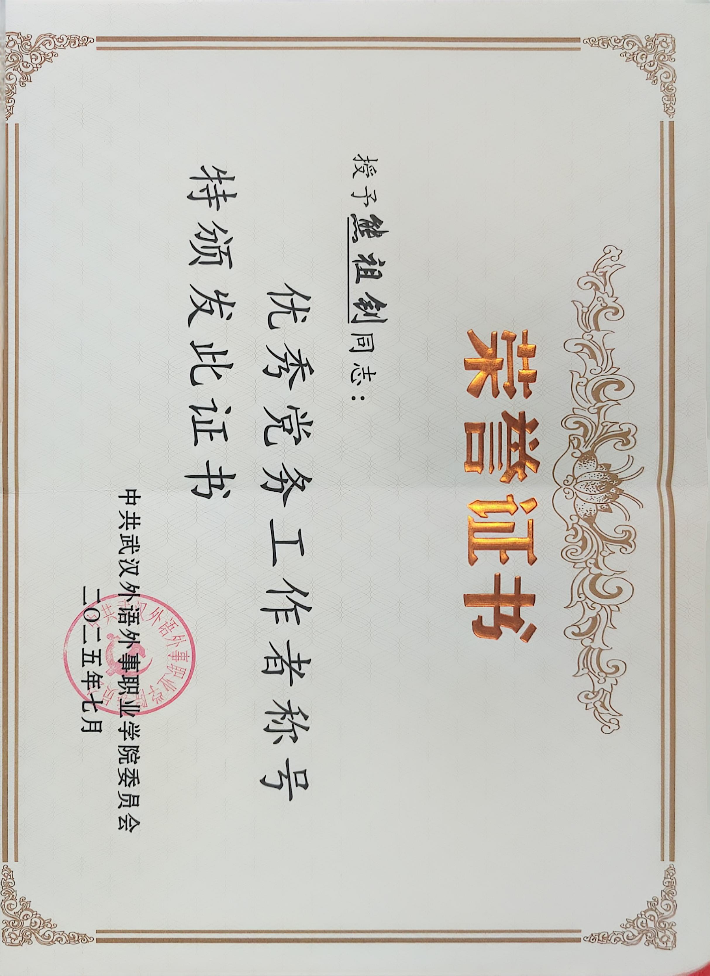 (通讯员 杨维)在武汉外语外事职业学院工程技术学院的发展征程中,有一位以党建为帆、以实干为桨的领航者,他就是学院院长熊祖钊。凭借在党建工作与学院发展中的突出贡献,熊祖钊同志在教师节表彰中荣获“优秀党务工作者”称号,而在他的带领下,工程技术学院党总支亦斩获“先进党总支”荣誉,以“党建红”点亮学院高质量发展之路。