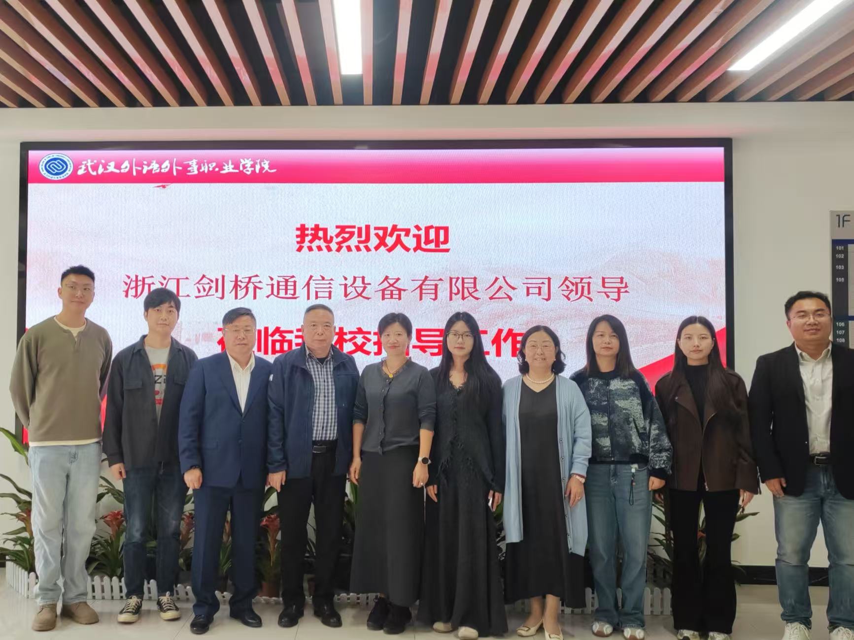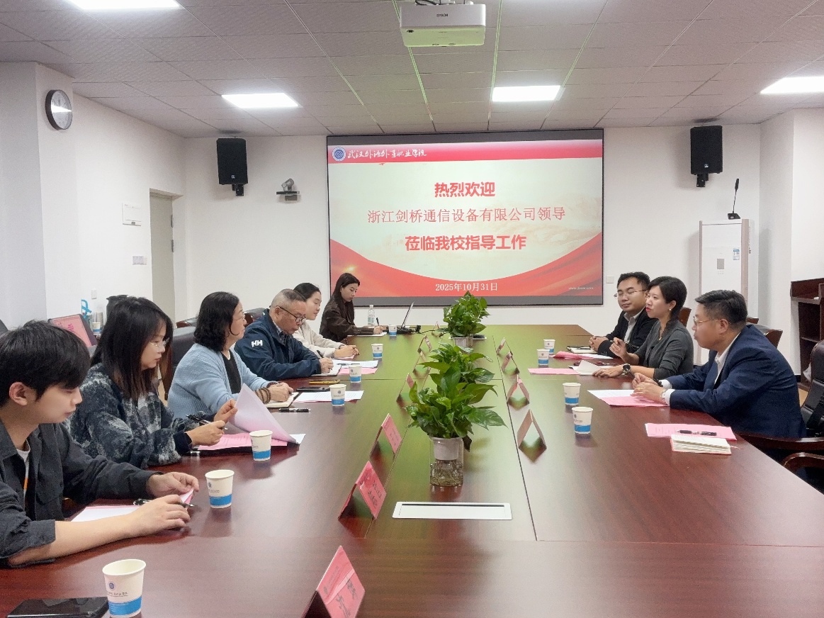 (通讯员 杨维)1031日上午10:00,浙江剑桥通信设备有限公司人事经理张英率四人考察团,到访武汉外语外事职业学院工程技术学院,就深化校企合作开展专项交流。工程技术学院院长熊祖钊、副院长於红梅热情接待考察团。