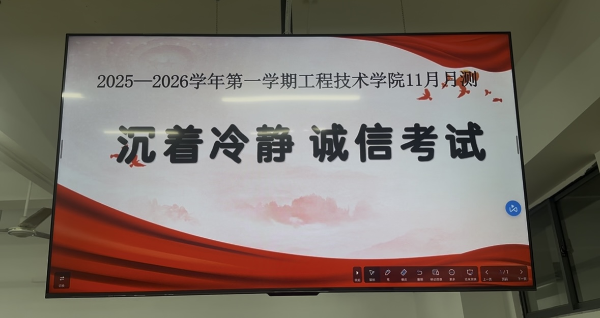(通讯员 熊凯峰)11月19日晚,工程技术学院在党总支副书记杨佩统筹下,顺利开展2025-2026学年25级第一学期11月月测。此次测试覆盖全体860名学生,以“防诈骗 + 英语”为核心内容,参照正规考试标准组织实施,创新推出“家长云监考”直播模式,成功实现“以测促学、以测促防、家校协同”的多重育人目标。