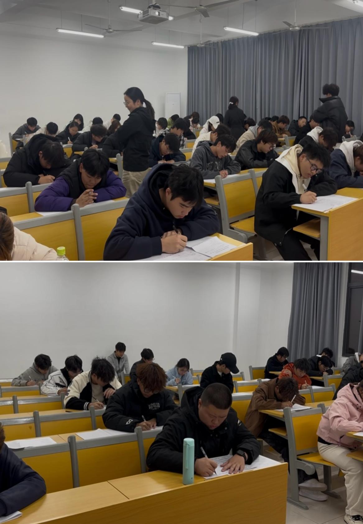 为保障月测公平规范、有序高效且透明开放,学院提前制定“考务保障 + 直播服务”双重方案,构建多维度管理体系。考前专门设立考务组,统筹协调考场安排、试卷管理、人员调度等核心工作。针对全员参考需求,学院打破班级界限随机编排考生,开设17个标准化考场,每个考场配备2-3名监考老师,同步设置楼层巡逻员,形成“考务组统筹 + 监考老师主责 + 巡逻员补位”的三级管理机制,从组织层面筑牢考试规范根基。