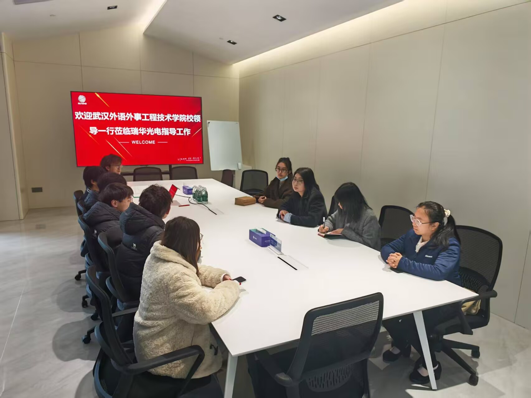 在企业座谈会上,湖北瑞华光电有限公司人力资源张经理介绍了公司发展、人才需求及培养模式,对我院实习生的专业素养与实践能力给予积极评价,并表示期待与学院建立长期稳定的合作关系。杨佩副书记感谢企业提供的实习平台,围绕人才培养、岗位拓展、就业对接等议题与对方深入交流,双方就深化产学研协同育人达成初步共识。