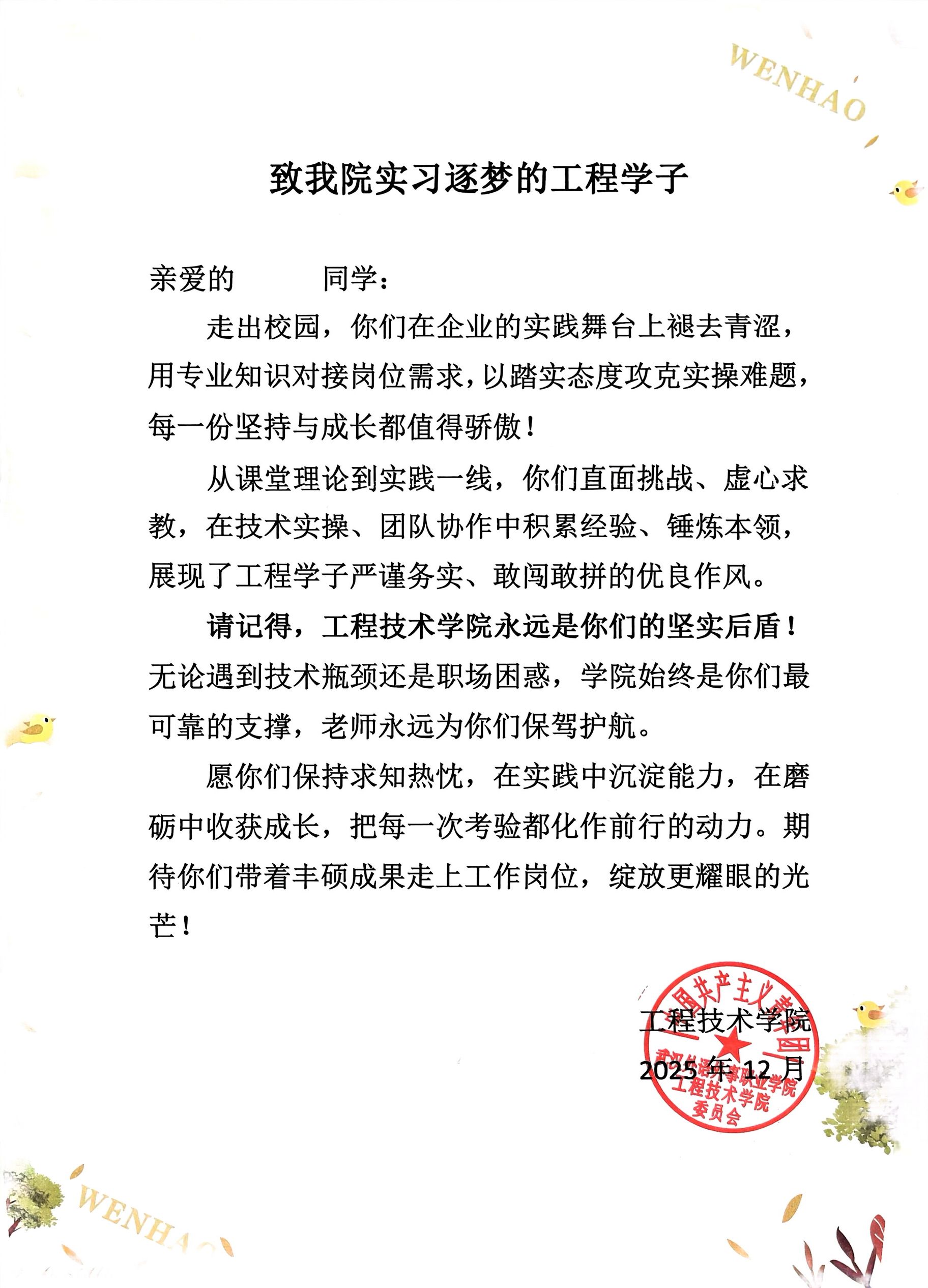 此次走访是学院落实“访企拓岗促就业”专项行动的具体举措,既掌握了实习生状况、提供了精准帮扶,也明晰了企业用人需求,为优化人才培养体系、提升就业服务质量提供了支撑。下一步,工程技术学院将持续推进校企合作走深走实,拓宽实习就业渠道,为学生高质量就业保驾护航。