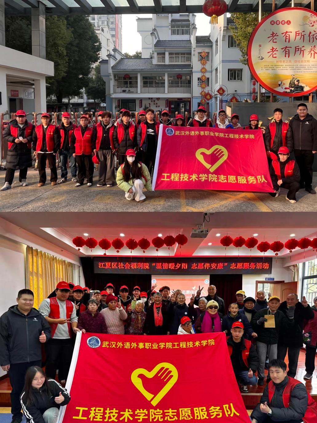 (通讯员 熊凯峰)寒冬送暖,情满夕阳。近日,工程技术学院优秀学生骨干代表组成志愿服务队,前往江夏中心福利院开展 “温情暖夕阳 志愿伴安康” 主题志愿服务活动。同学们以实际行动践行社会责任,用青春活力为福利院的老人们送去关怀与欢乐,让这个冬日暖意融融。
