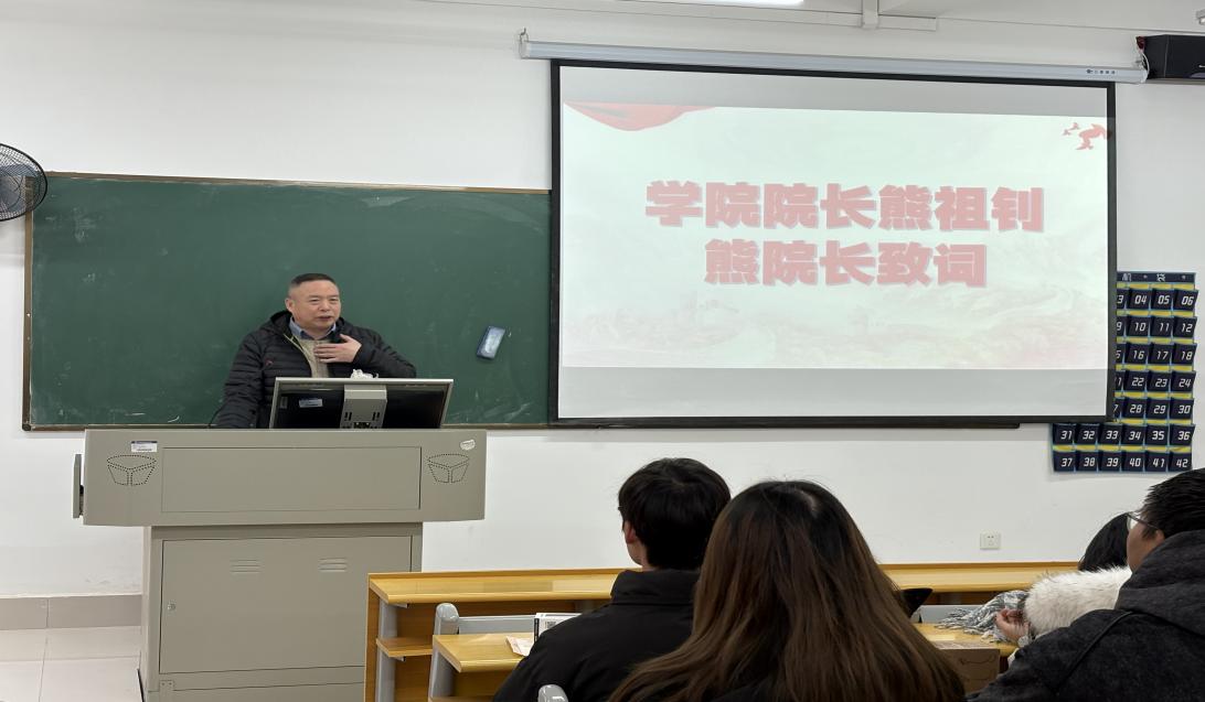 颁奖环节结束后,院长发表总结讲话。他向获奖同学表示祝贺,并宣布工程技术学院在全校年度评比中名列前茅的喜讯,这一荣誉凝聚了全院师生的共同努力。针对参赛同学,院长期许道:“学习永远不嫌晚,关键在于把握当下、全力以赴。希望大家珍惜在校时光,积极参与实践与技能竞赛,在磨砺中提升自我,筑牢发展根基。”真挚有力的讲话为同学们指明方向,也极大鼓舞了在场师生的士气。