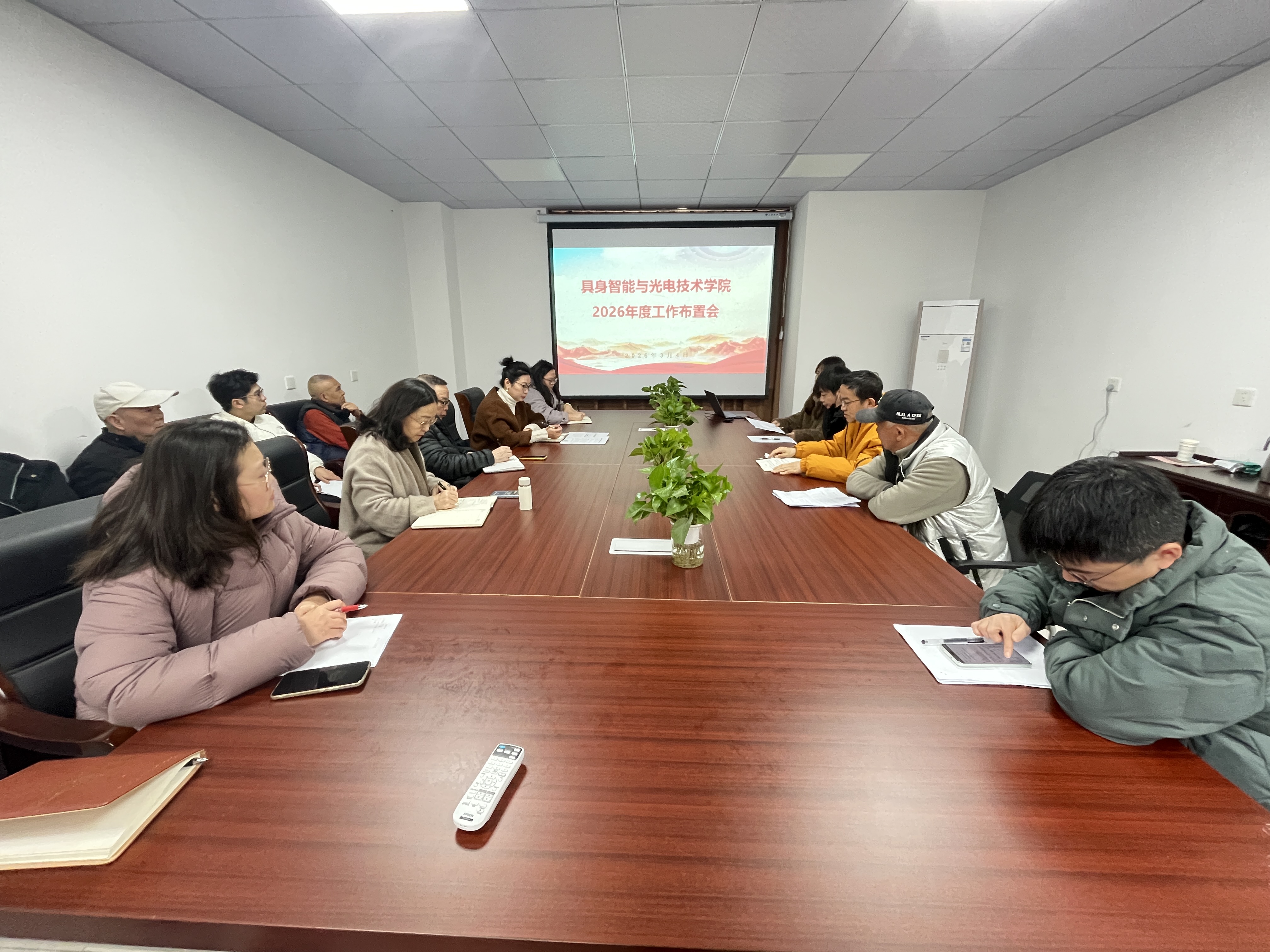 (通讯员 陈倩男)2026年3月4日上午,具身智能与光电技术学院在办公楼302会议室召开新学期首次全体教职工大会,全面部署新学期工作。学院熊院长、教学於副院长、党总支副书记杨佩及全体教职工参会。