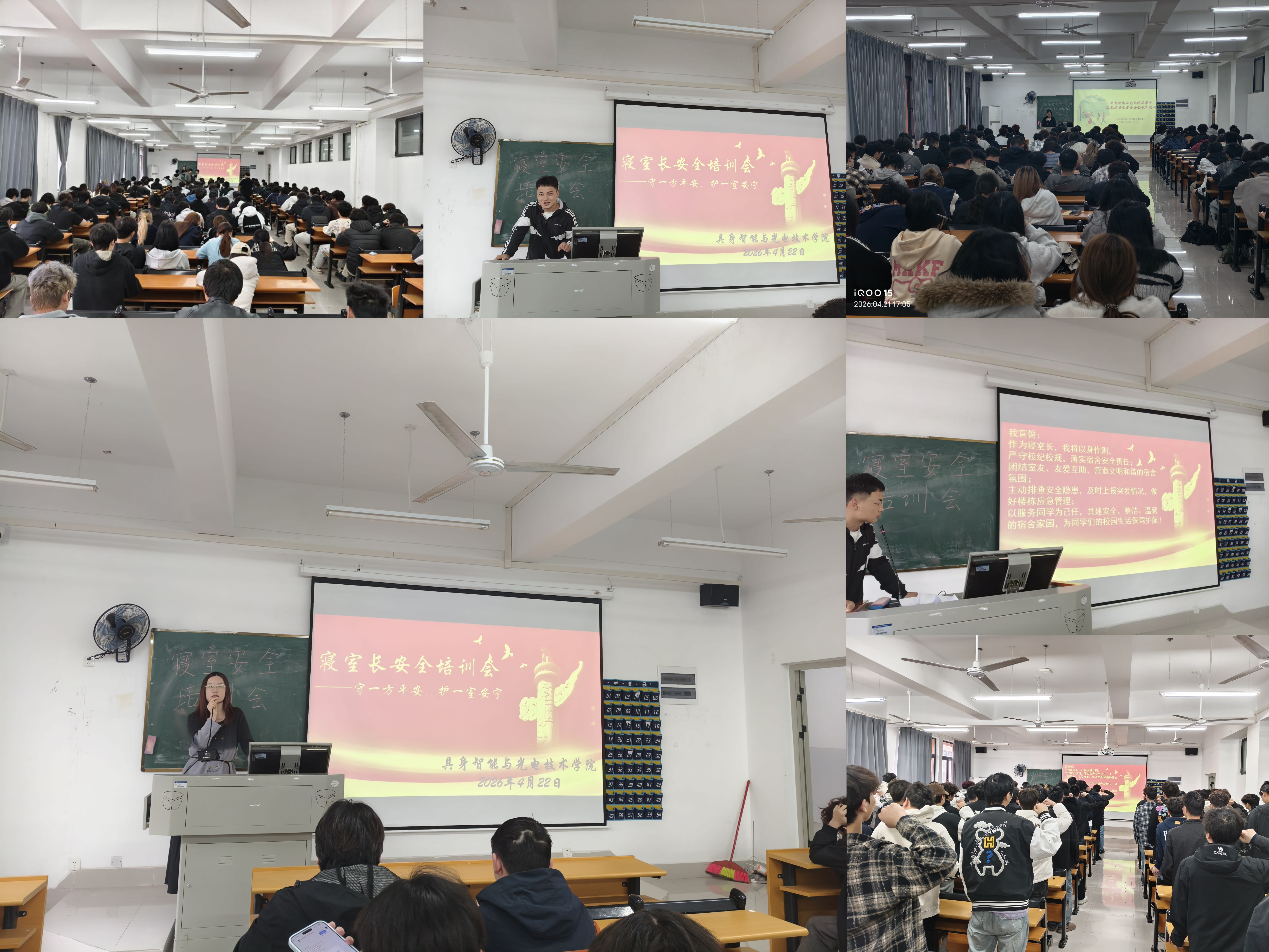 随后,学院邀请优秀寝室长、优秀宿舍应急管理员代表邱锦做经验分享。他围绕宿舍用电、消防、财产等核心安全要点,结合实际案例展开讲解,帮助寝室长掌握隐患识别与应急处置方法。培训最后,邱锦带领全体寝室长庄严宣誓,郑重承诺将认真履行岗位职责,严守工作纪律,用心服务室友,全力维护寝室安全稳定,以实际行动筑牢学院学生管理基层防线,助力构建平安和谐校园。