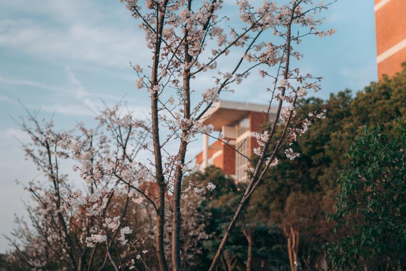 2013年,樱花在我们美丽的校园落户,截至今年,学院在南教学区樱花园、樱花大道、雁栖湖草坪栽种了800余株樱花树,包含枝垂樱、白色单瓣早樱、红色单瓣早樱等6个品种,在武汉高校中,无论是在樱花品种上还是数量上,我院都是稳居前列。