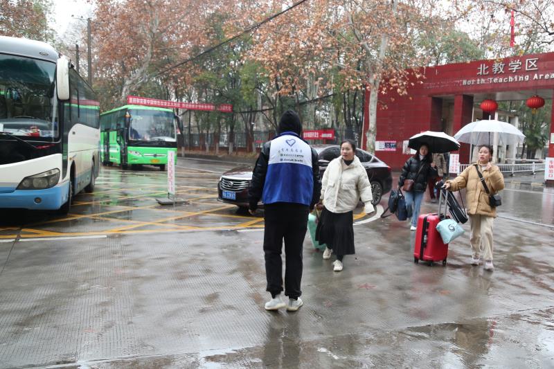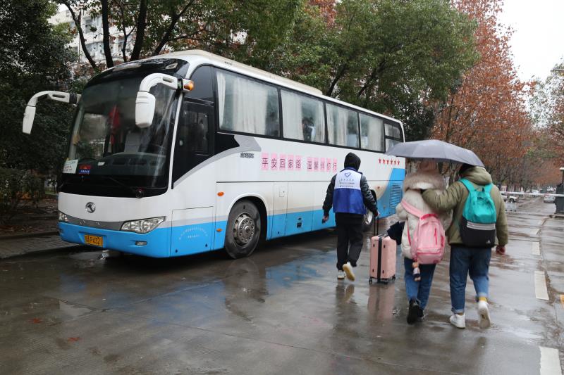 新闻网讯(记者汪琴通讯员皮芳)“同学,请上车,这是学院专门为放假回家学生安排去武汉站的免费校车。”“同学,我帮你放行李吧。”1月10日上午9时,天空中飘着小雨,寒意阵阵来袭,学院学生志愿者张志昱在校车停车站热情地招呼着拖着行李箱回家的学生们,引导他们乘坐学院提供的免费大巴前往武汉站。