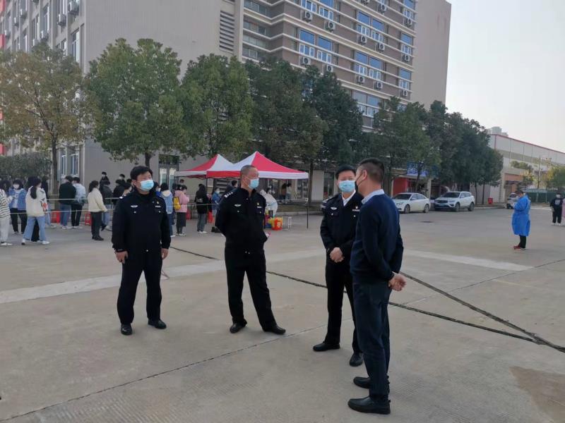 4日下午,江夏区委常委、公安局长宋嵘,藏龙岛派出所所长曾凡、副所长彭龙飞一行到藏龙岛校区检查学校疫情防控、核酸检测及校园安保工作。