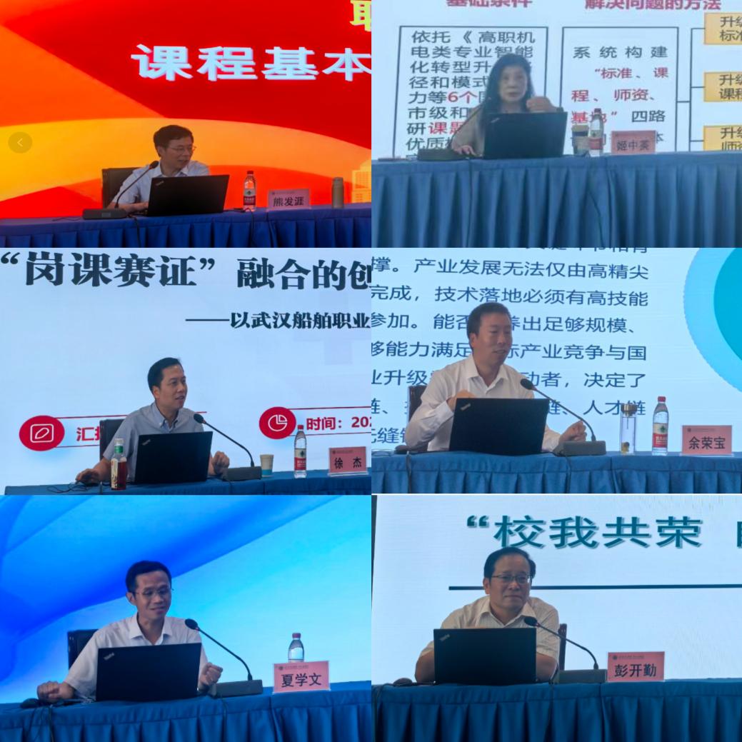 天津职业大学原校长董刚围绕“职业教育理念与策略”主题,解析破解“育人与产业需求错位”难题、实现从“技能培养”到“价值创造”进阶的路径;深圳职业技术大学原副校长马晓明从“深化产教融合,提升职业学校关键办学能力”的角度,对职业教育政策背景、对接产业设置专业、提升关键办学能力三个方面阐述全国优质高职院校做法;黄冈职业技术学院原校长熊发涯为老师们讲解了课程六要素在课程体系建设中的应用及职业教育公共基础课、专业基础课、专业核心课、专业拓展课课程标准建设举措;武汉交通职业学院副校长姬中英教授通过解析获批国家级教学和省级教学成果奖一等奖申报书,为老师们传授教学成果奖的培养和申报书撰写技巧;武汉船舶职业技术学院教务处处长徐杰以“岗课赛证”融合的创新实践为主题,讲解了武汉船舶职业技术学院在岗课赛证融合的先进做法;襄阳职业技术学院校长余荣宝教授以襄阳职业技术学院为例,传授了双高院校在产教融合、校企合作实践中宝贵经验;湖北科技职业学院副校长夏学文教授以加强教学设计提高教学能力为题,为老师们做了一场生动的教学能力大赛备赛的辅导;武汉铁路职业技术学院副校长彭开勤教授以“校我共荣 自带光芒”理念下的师资队伍建设为题,讲授了师资队伍建设实践的武汉铁院模式。