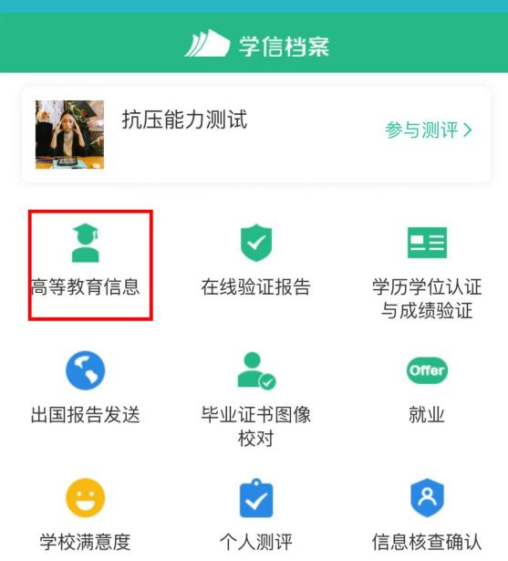5、登录进入后,点击“高等教育信息”中“学籍”模块。
