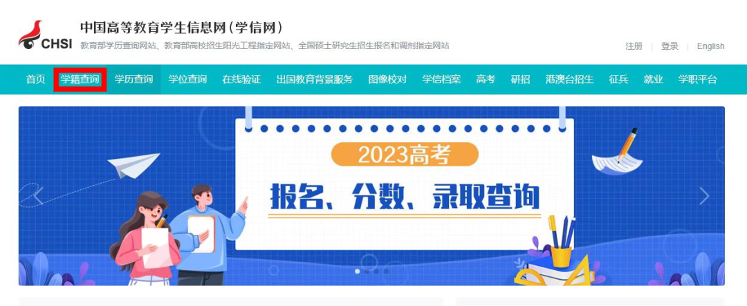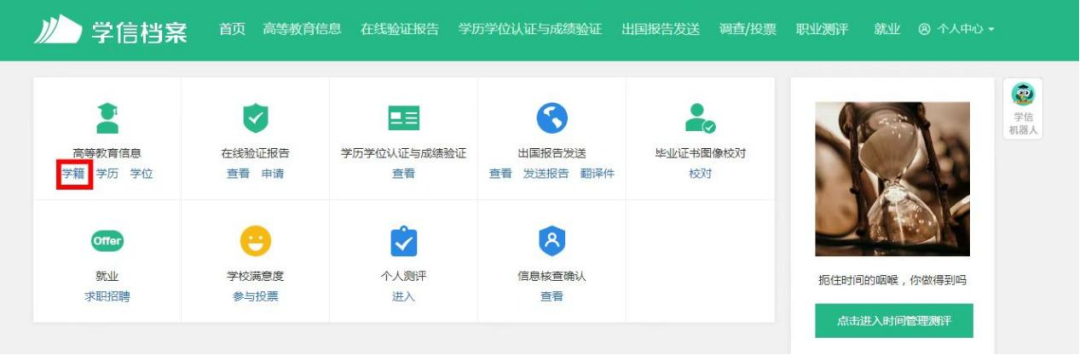 1.登录学信网:https://www.chsi.com.cn/,点击“学籍查询”