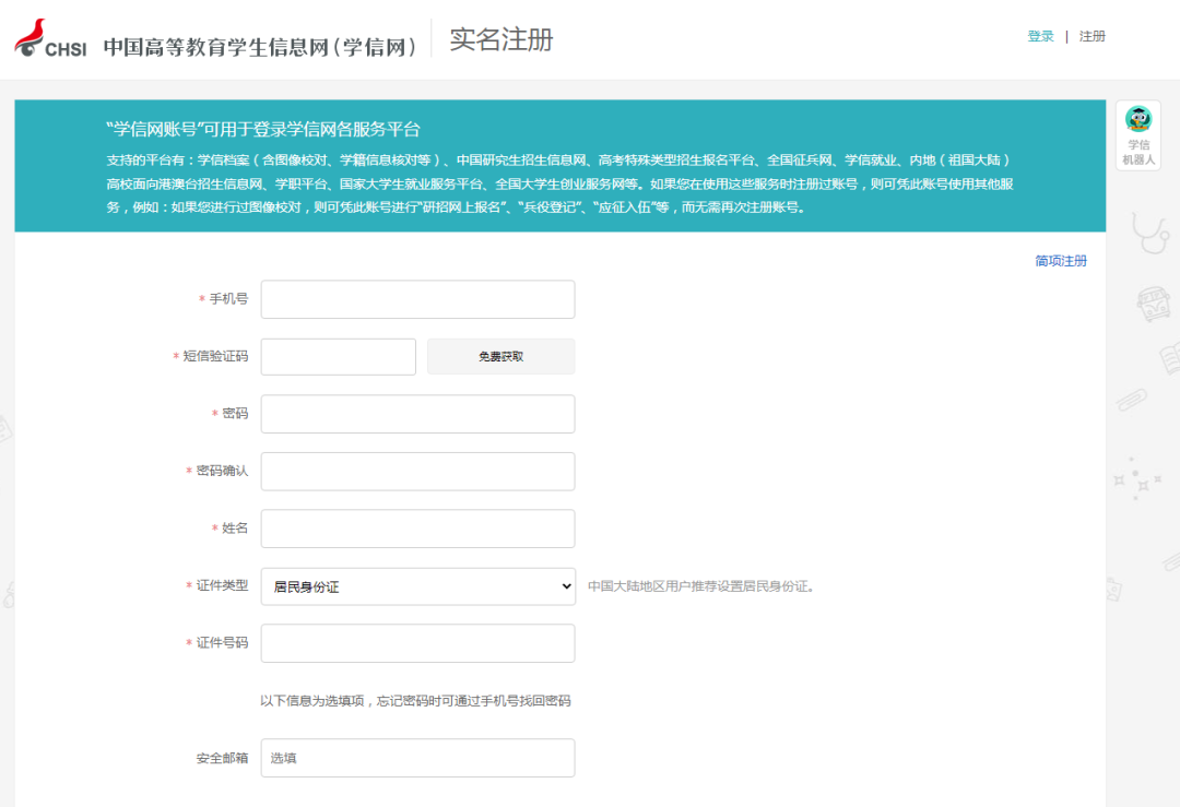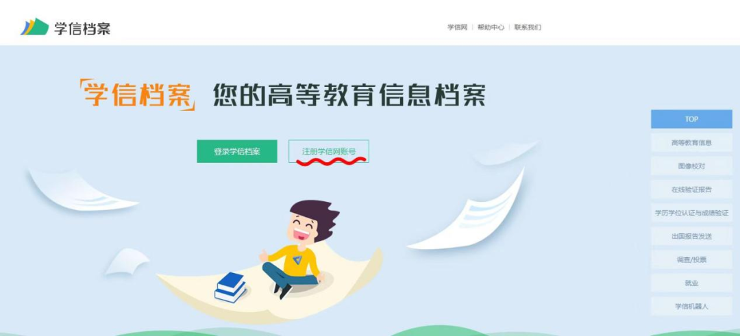 3、如学生已有学信网账号,请直接登录学信档案;如没有学信网账号,请先注册后,再登录学信档案。