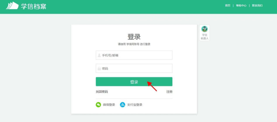 2、如学生已有学信网账号,请直接登录学信档案;如没有学信网账号,请先注册后,再登录学信档案。