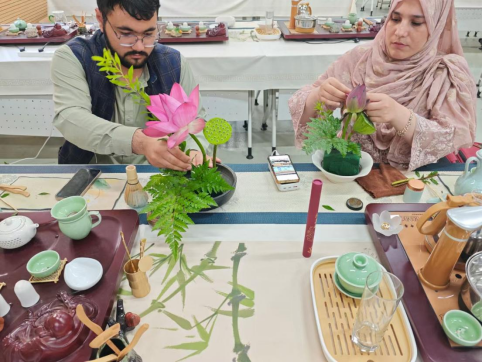 本项目以“语言为桥,文化为媒”为主线,旨在通过多元化的课程设计,帮助国际学生融入中国生活、理解文化内核。课堂上,留学生们从执笔描红开始接触书法,在茶香氤氲中领悟礼序,于一花一叶间体会插花的静心之道;端午期间,他们亲手包裹粽子、缝制香囊,在民俗实践中触摸中国人的人文情怀。三个月的时光虽短,却足以播下友谊与理解的种子。这群来自世界各地的年轻人,正带着对中国文化的热爱与感悟,走向更广阔的天地。