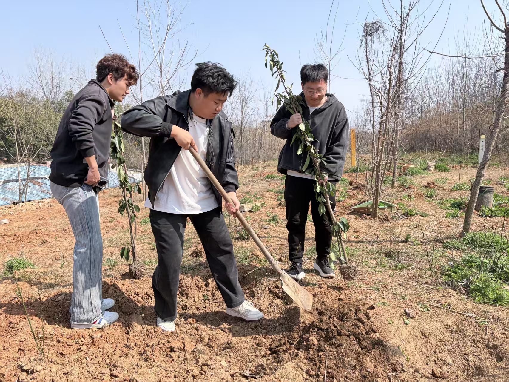 劳动现场:分工协作,干劲十足活动现场气氛热烈,大家热情高涨、默契配合。从挖坑、扶苗到培土、浇水,每一道工序都细致严谨,每一个动作都充满力量,有的同学紧握铁锹,奋力铲土挖坑,为树苗扎根做好准备;有的同学小心翼翼扶稳树苗,确保株干笔直,让新苗稳稳 “站” 好;还有的同学提着水桶,为刚种下的树苗浇灌 “生命之水”,期盼它们茁壮成长。阳光下,泥土的芬芳与大家的欢声笑语交织,原本空旷的土地上,一株株树苗迎风而立,承载着师生们对绿色未来的美好期许。