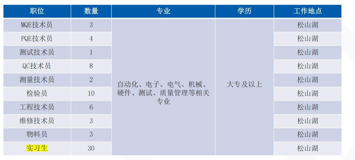 三、工厂职位 (有意向学生可向辅导员处报名)