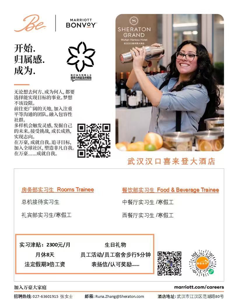 招聘信息:武汉汉口喜来登大酒店