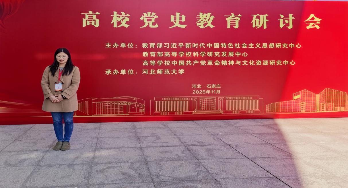 2025年11月1日至11月2日,由教育部习近平新时代中国特色社会主义思想研究中心、教育部高等学校科学研究发展中心、高等学校中国共产党革命精神与文化资源研究中心主办,河北师范大学承办的“2025年度高校党史教育研讨会”在河北师范大学真知学堂隆重举行。来自全国20多省、自治区、直辖市的高校党史研究专家、学者,思政课教师、期刊杂志社等共300余名代表参会,共同探讨新时代高校党史教育的新路径与新方法。本次研讨会主要分为主旨报告、论文代表发言、分组论坛、参观展览馆等四个环节。马院教师王会娟老师参加了本次研讨会。