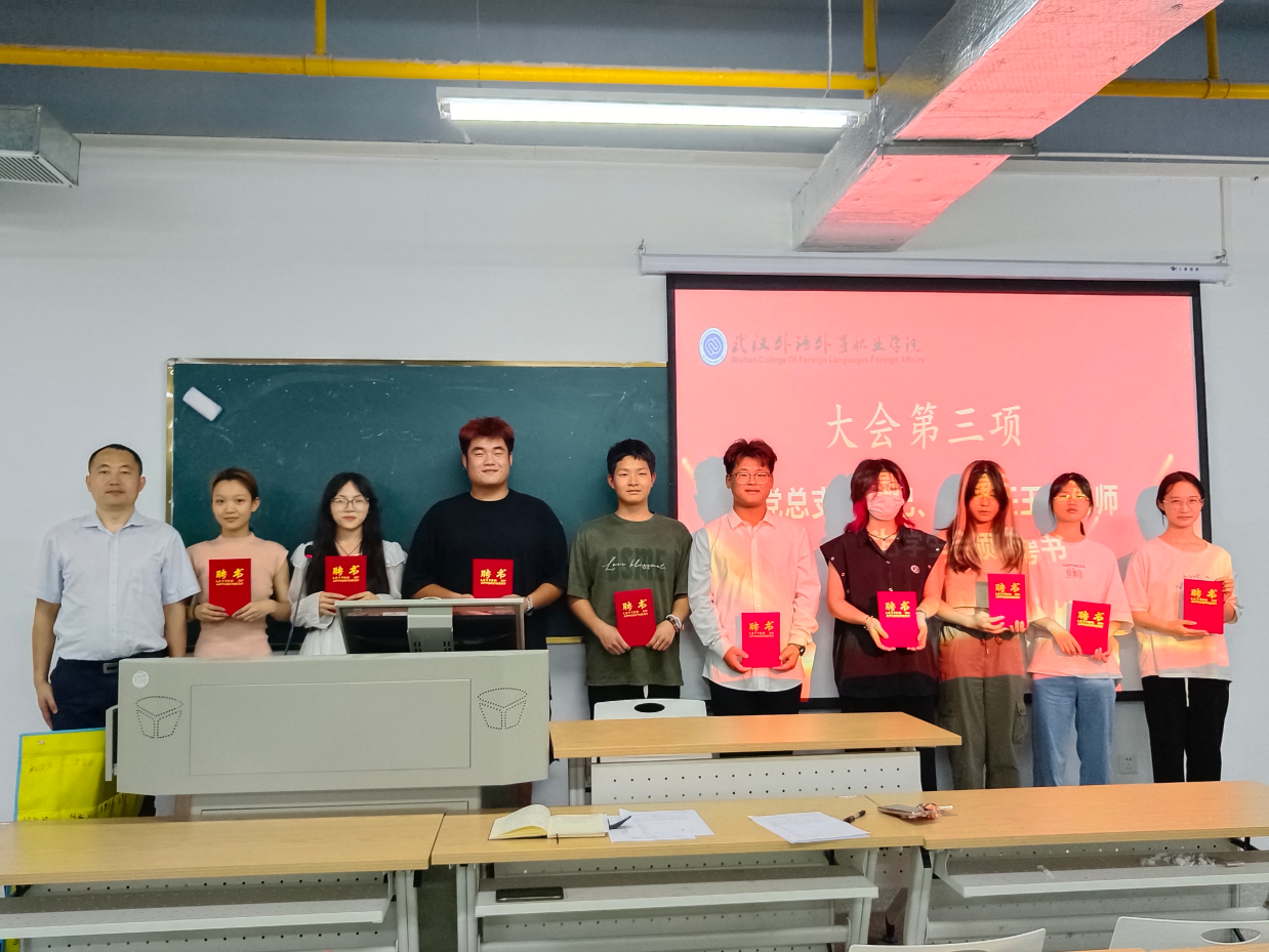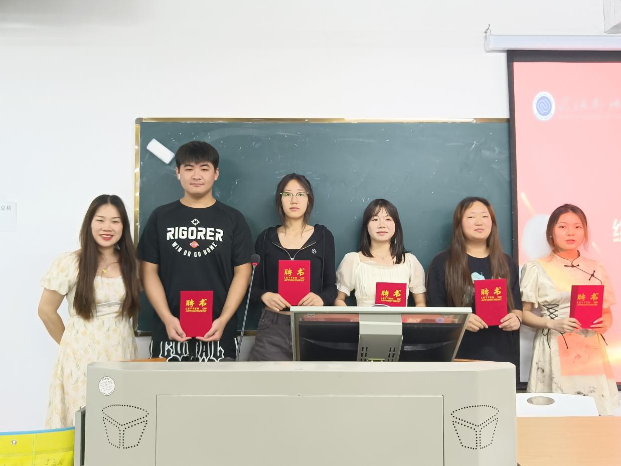 随后,王波老师为学生会成员颁发聘书。学生会主席团执行主席高杨、分管主席程时博和向梦佳等人,以及各部门的部长和副部长们,一一上台接受聘书,他们的脸上洋溢着自豪与喜悦。紧接着,黄慧玲老师也为分团委成员颁发了聘书,标志着分团委的正式成立。