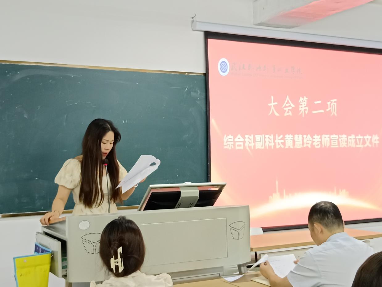 大会伊始,全体参会人员起立,注视着鲜艳的五星红旗冉冉升起,共同奏响中华人民共和国国歌,激昂的旋律激荡着每一位在场者的心。紧接着,综合科副科长黄慧玲老师走上台前,庄重宣读了分团委、学生会的成立文件,明确了其职责与使命。