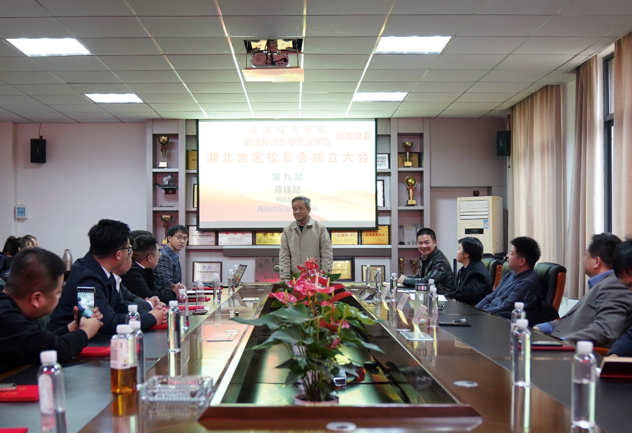 院长陈建勋代表校友总会对湖北地区校友会的成立表示热烈祝贺,对长期关心支持母校发展的校友们表示衷心感谢,并简要介绍了学院的发展情况。陈建勋表示,校友是学院的“品牌资源”,是潜在的“智力资源”,是促进母校与社会交流合作的“人脉资源”。成立湖北地区校友会,既是广大校友的强烈愿望,也是学院建设与发展的必然要求,希望更多的校友主动为母校链接优质资源,参与到母校的建设中来,形成母校关心校友、校友回馈母校的双赢局面。