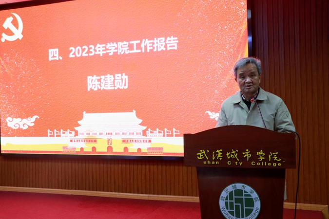 陈建勋以《求真务实强内涵 稳步建设显特色》为题作2023年院长工作报告。