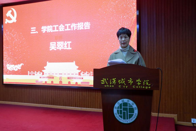 吴翠红代表学院第四届工会委员会,向大会作2023年工会工作报告。