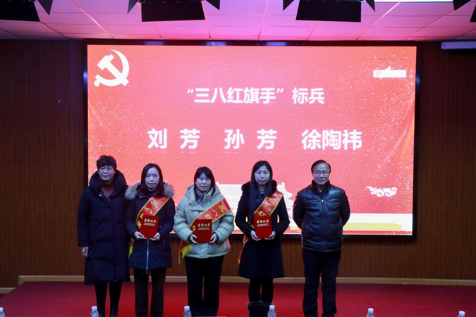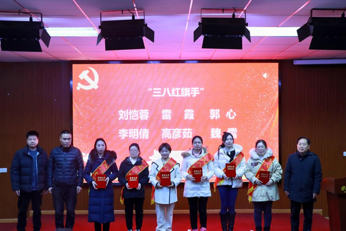 赵光红宣读《关于表彰学校三八红旗手的决定》,授予刘芳等3位同志“三八红旗手标兵”称号,授予刘恺蓉等7位同志“三八红旗手”称号。