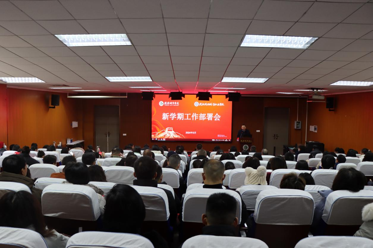 陈建勋结合2024年重点工作,对新学年的工作进行了全面部署。 2024年,学院要围绕推进办学条件达标工程评估这个阶段性目标,做好以下几项工作。第一,深化教育教学改革,推动学院教学工作内涵发展。要对标本科教学工作合格评估标准,规范教学档案管理。深入贯彻以学生发展为中心的理念,强化教学工作中心地位,持续推进教学质量工程建设,持续优化人才培养体系,持续深化专业优化调整,坚持以评促建、以评促改、以评促管、以评促强。第二,优化学生工作育人环境,提供全方位的培养平台和机会。着力抓好学生引航教育、养成教育、就业指导及离校教育;持续加强专职思政队伍综合素养培训,努力提升辅导员队伍职业化专业化水平;深入开展“我为评估做贡献,树立良好学风”主题活动,营造优良学风;强化劳动教育、实践教育、养成教育、朋辈教育和自我教育,把思想政治教育工作抓在平常、融入日常;加强心理健康教育工作,促进学生身心健康。继续积极组织学生参加“挑战杯”“互联网+”大学生创新创业大赛,发挥各类学科竞赛对学生成长成才的促进作用;加强“第二课堂”建设,打造形式多样、内涵丰富的校园文化活动,推动校园文化品牌建设。第三,扩大自有师资数量,优化师资队伍结构,强化师资队伍建设。努力完善师德教育体系,继续加大人才引进力度,合理优化人力资源调配,为学院内涵式发展打下坚实基础。第四,坚持需求牵引,逐步推动科研工作上水平。重视高层次项目申报工作,继续推进科研团队建设工作,积极为学院科研人员搭建合作交流平台,在拓展研究思路、优化科研资源等方面提供帮助。第五,实现提档升级,持续抓好招生、就业及升学工作。认真落实招生工作模式,进一步完善就业指导和服务工作,拓宽就业渠道,深化就业工作重心由“就业数量”向“就业质量”转移,全面实施“就业质量提升工程”,确保本届毕业生就业总体稳定。陈建勋强调,学院正处于发展的关键时期,希望全体教职员工明确学院工作的中心思路,结合自身岗位工作,认真谋划、狠抓落实,勇于攻坚克难,保质保量地完成好各项工作任务,为实现学院的发展目标而努力。