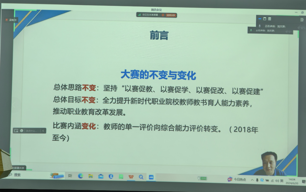 新闻网讯(通讯员 吴煦琛)6月20日下午,一场别开生面的网上讲座在我校成功举行。全国职业院校技能大赛赛项规程赛题编制专家、湖北省职业院校技能大赛评委、荆州理工职业学院建筑与环境工程学院院长、资深教授刘文彦,依托在线平台,为我校教师组织了一场以提升教师教学能力为主题的专题培训。