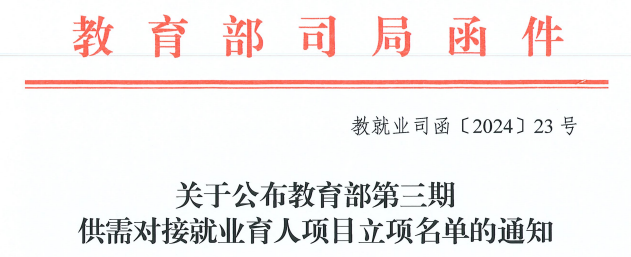 新闻网讯(通讯员李娟)近日,教育部高校学生司印发《关于公布教育部第三期供需对接就业育人项目立项名单的通知》,经高校与用人单位联合申报、专家审核,确定了第三期供需对接就业育人项目名单。我校共有13个项目入选,项目类型涵盖就业实习基地、定向人才培养培训项目两大类,项目入选数量比2023年增加了10项。