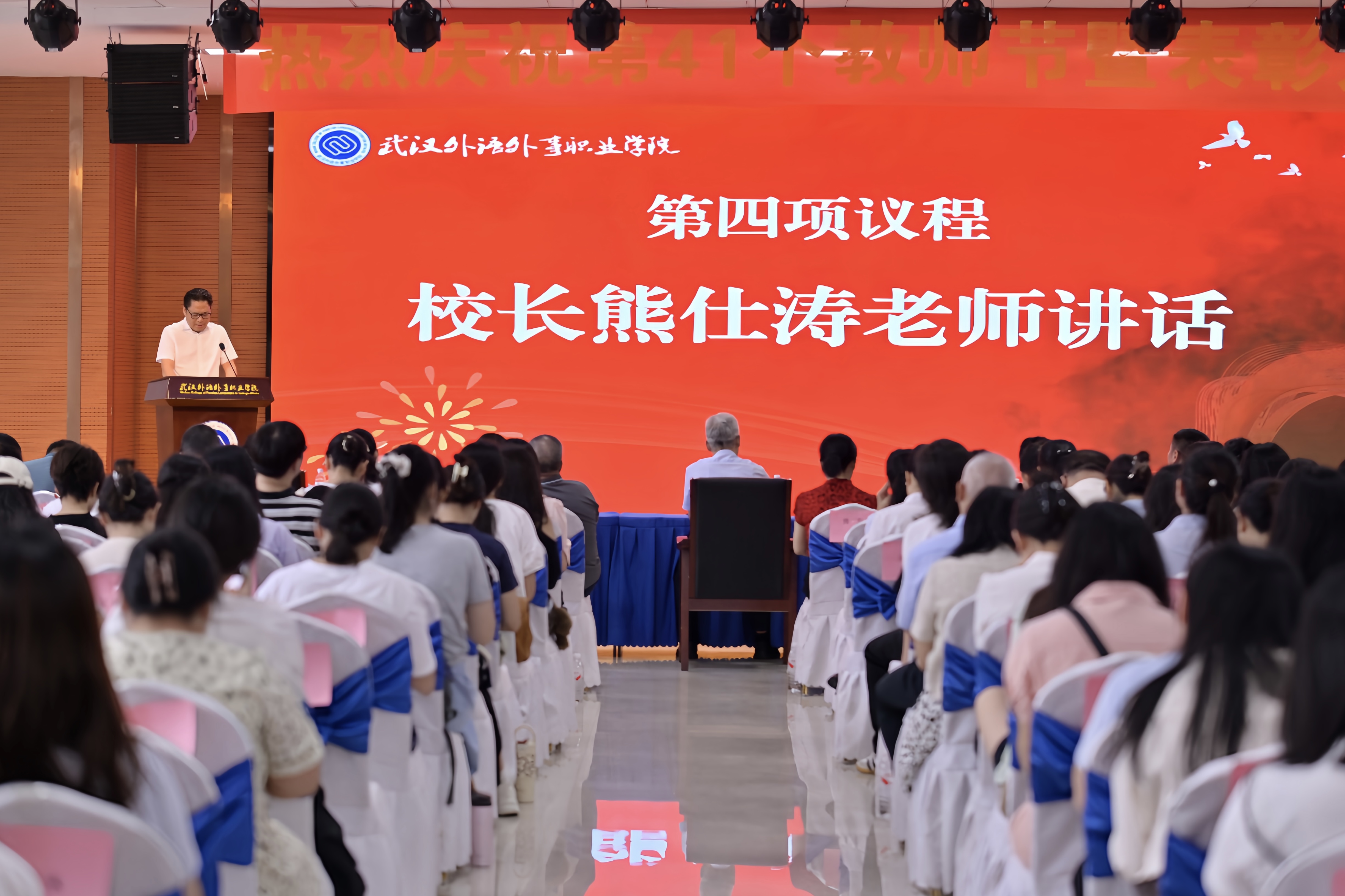 熊仕涛向全体教职工提出了三点希望:一是坚守使命,引领学生成长成才。他强调,高校是培养社会主义建设者和接班人的主阵地,教师应时刻牢记“为党育人、为国育才”的初心和使命,努力成为“四有好老师”,当好塑造学生品格、品行、品味的“大先生”。二是追求卓越,与学校同发展共进步。他鼓励广大教师要立足岗位,主动开展教育教学改革研究,积极参加专业建设、课程建设等,与学校同发展、共进步,打造同类院校一流师资队伍。三是尊师重教,营造教书育人好环境。他表示,学校将始终坚持“尊师、重师、强师、严师”的导向,不断完善人才评价体系,为教师潜心治学、安心从教创造更优越的条件。