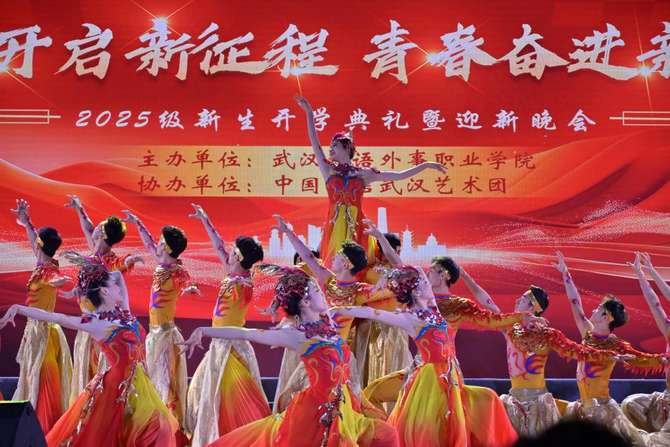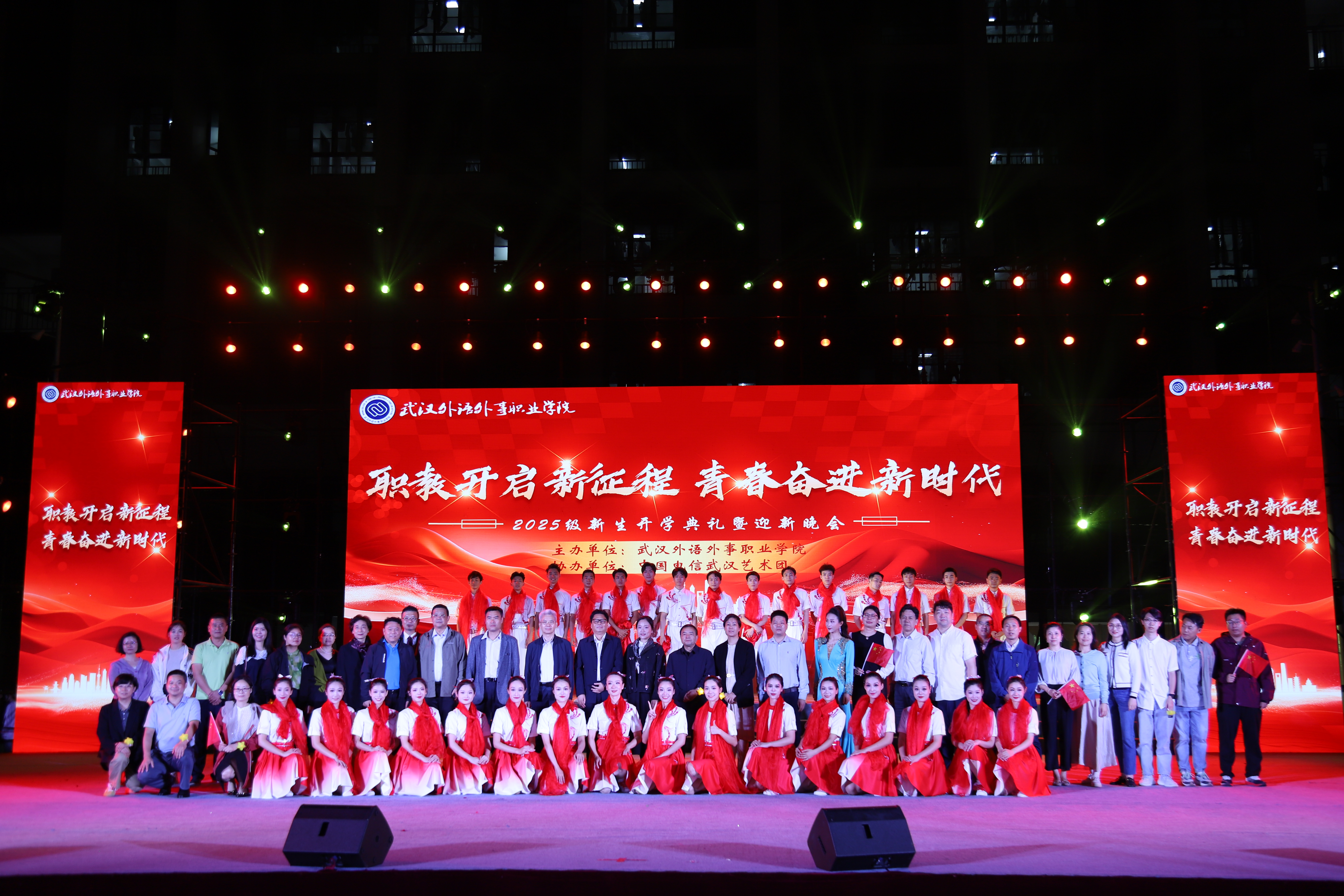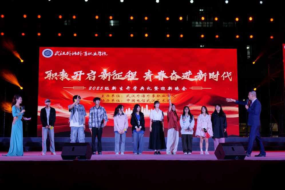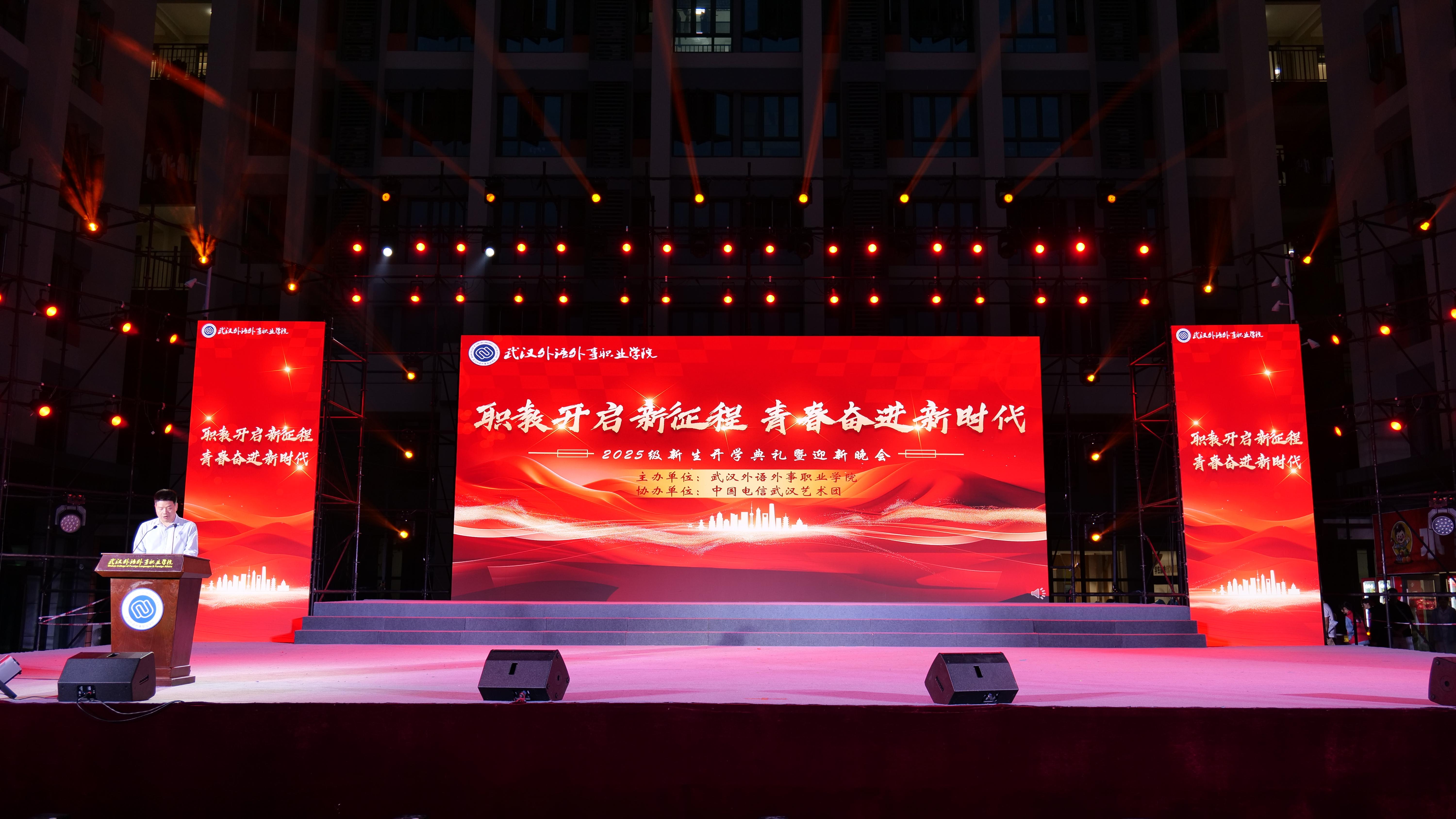 新闻网讯(记者 刘佳琪 摄影 黄俊豪 王骏康 潘宜珊 徐会明 万紫怡)9月19日晚,学校2025级新生开学典礼暨迎新晚会在19栋学生公寓前广场隆重举行。校长熊仕涛,党委书记盛建龙,副校长宋移安、刘丹、陶智勇,党委副书记杜磊,校长助理熊绪出席开学典礼。学校各单位(部门)负责人、各学院党总支副书记、2025级新生辅导员等教职工代表及现场近4900名2025级新生参加典礼。现场师生一同观看迎新晚会。开学典礼由党委副书记杜磊主持。迎新晚会由学校学生工作部(团委)与中国电信武汉艺术团联合承办。