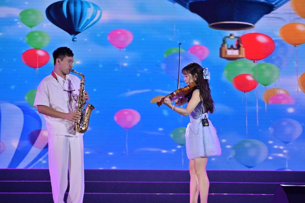 迎新晚会在全体师生奏唱《我的祖国》歌声中圆满落幕。