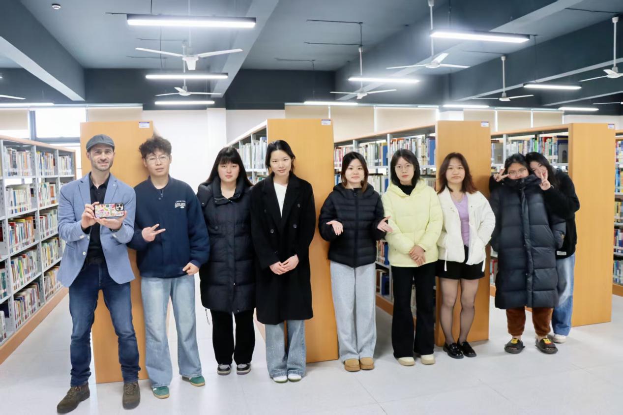 拍摄期间,师生团队先后在图书馆、实训楼、专业教室等校园地标取景,在真实场景中完成多场戏份录制。与传统课堂以理论讲授、词汇记忆为主的模式不同,此次微电影拍摄将语言学习融入完整创作流程:从剧本研读、台词推敲到现场演绎,每一句西语对话、每一处语气停顿,都成为学生开口表达、灵活运用语言的实践载体。