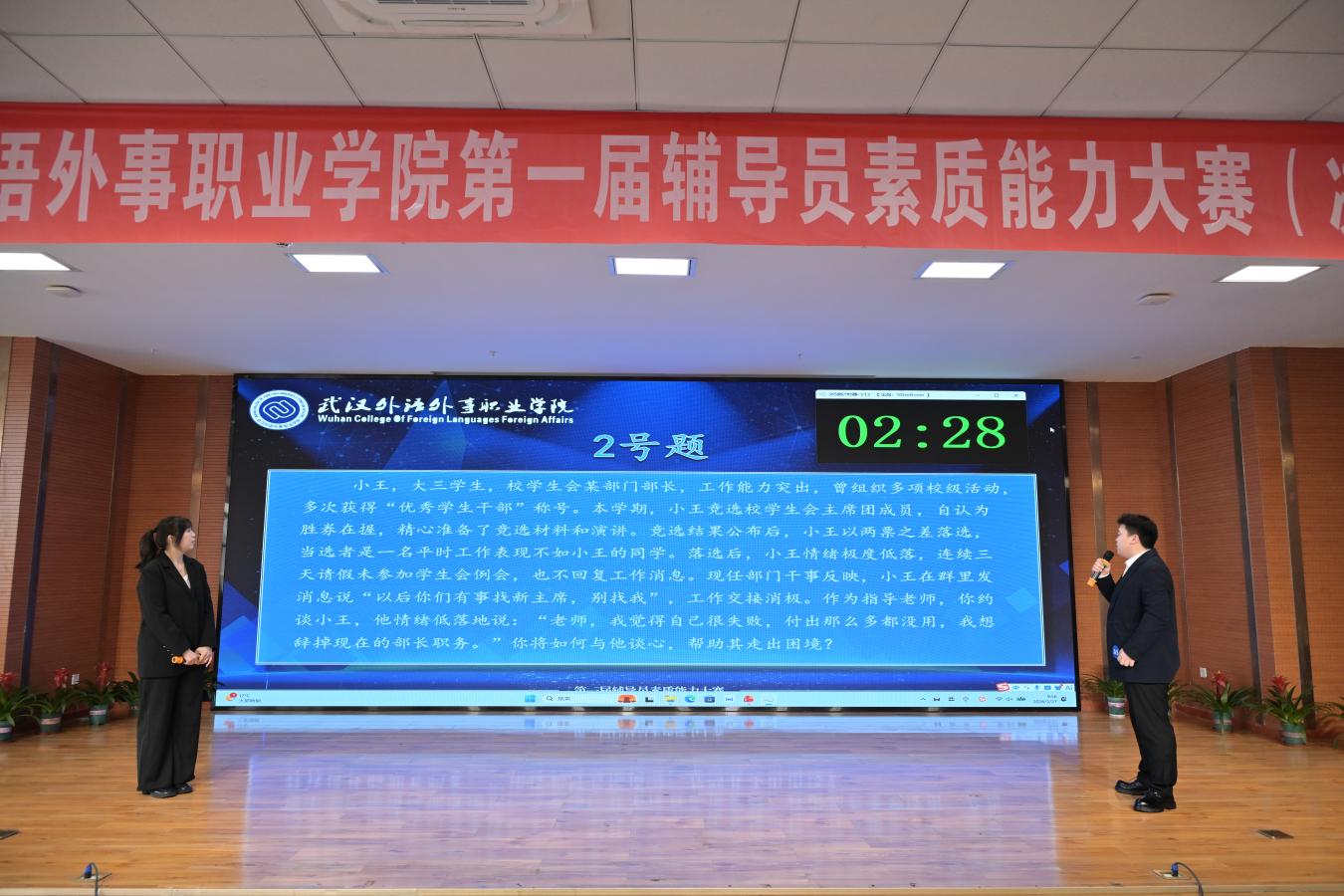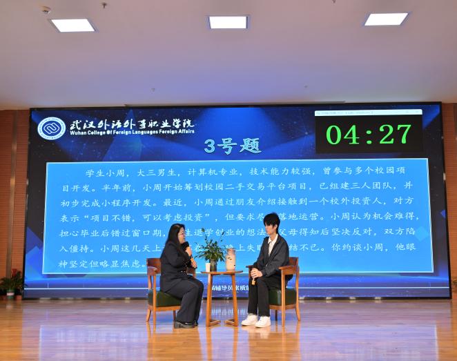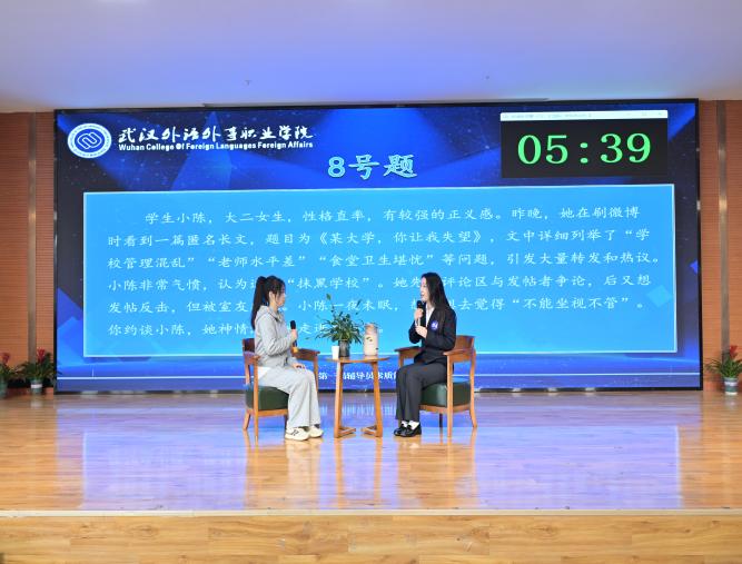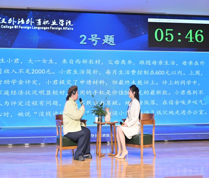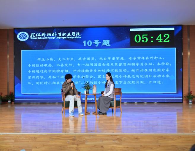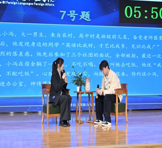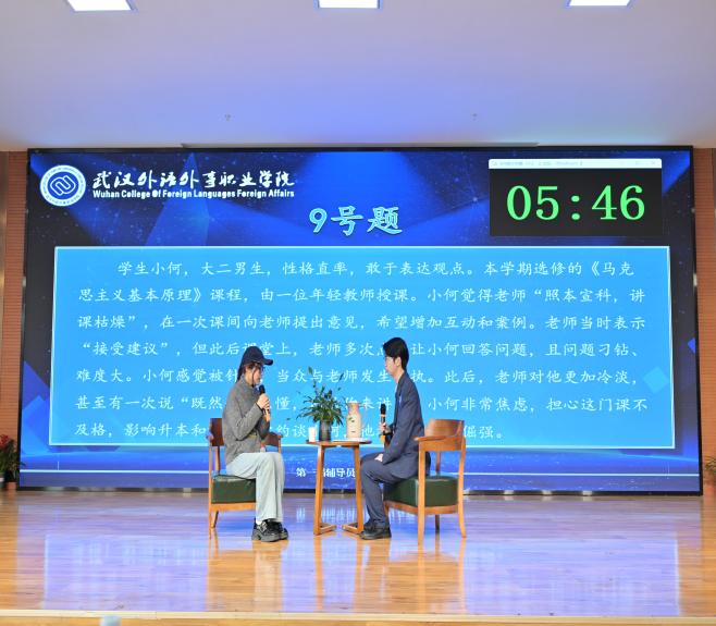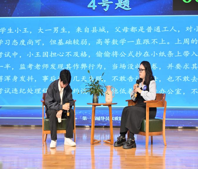 谈心谈话环节采用情景再现的形式,选手们化身“知心人”,针对模拟的学生问题场景,以真诚的态度、耐心的沟通,与“学生”进行实战对谈。从倾听诉求到共情理解,从精准引导到排忧解难,选手们用温暖的语言、专业的方法,有效化解“学生”的思想困惑与实际难题,生动诠释了“围绕学生、关照学生、服务学生”的育人初心。
