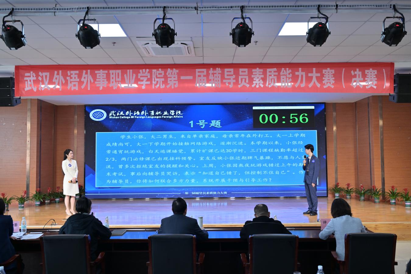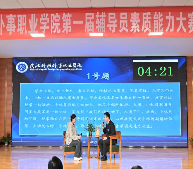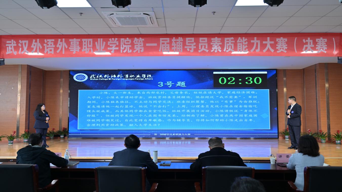 新闻网讯(通讯员 周昕 陈泷 郑慧敏)为全面提升我校辅导员队伍的专业素养与育人能力,搭建交流学习、展示风采的平台,3月27日,我校第一届辅导员素质能力大赛(决赛)在大学生活动中心成功举办。马克思主义学院院长郑全新、党委组织部部部长张凤秦、后勤保卫处处长曾剑、图书档案馆馆长蔡霞、学生工作部部长施卫荣担任评委。校党委副书记杜磊、各二级学院党总支副书记、全体辅导员以及学生工作部全体老师参加活动。大赛由城市更新与创意技术学院辅导员郭硕洋老师主持。