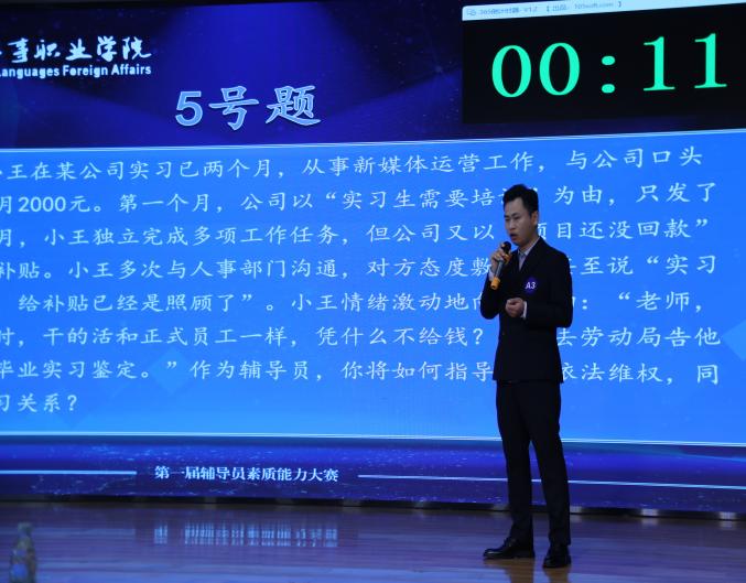 本次大赛决赛设置案例研讨、谈心谈话两大核心环节,全面考察辅导员的理论素养、应急处置能力与沟通引导能力。在案例研讨环节,选手们围绕学生日常管理、学业困惑、心理疏导等常见案例,精准剖析问题根源,结合政策理论与工作实际,提出科学可行的解决方案,展现出对学生工作的深刻理解与专业判断。