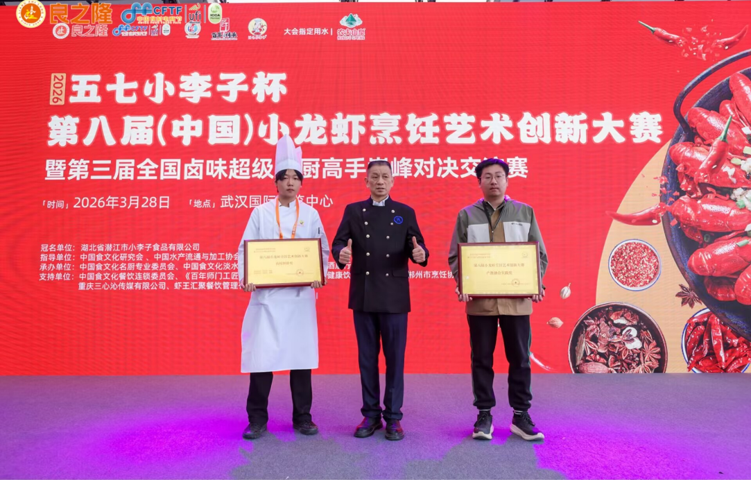 (通讯员 谷芸子)3月28日,在武汉国际博览中心C6馆举办的良之隆·2026第十四届中国食材电商节上,“五七小李子杯”第八届(中国)小龙虾烹饪艺术创新大赛暨第三届全国卤味超级名厨高手巅峰对决交流赛圆满落幕。