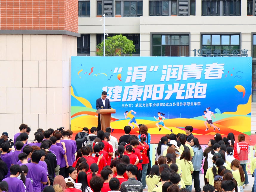活动启动仪式上,武汉外语外事职业学院副校长陶志勇发表致辞。他表示,青年学子是校园发展的核心力量,既要深耕专业知识、练就扎实本领,也要坚持运动健身、拥有健康体魄。希望两校同学以本次校园跑为起点,把运动中展现的拼搏精神、坚持毅力,融入日常学习与生活中,以饱满的热情、昂扬的状态,追逐青春理想,成就更好的自己。