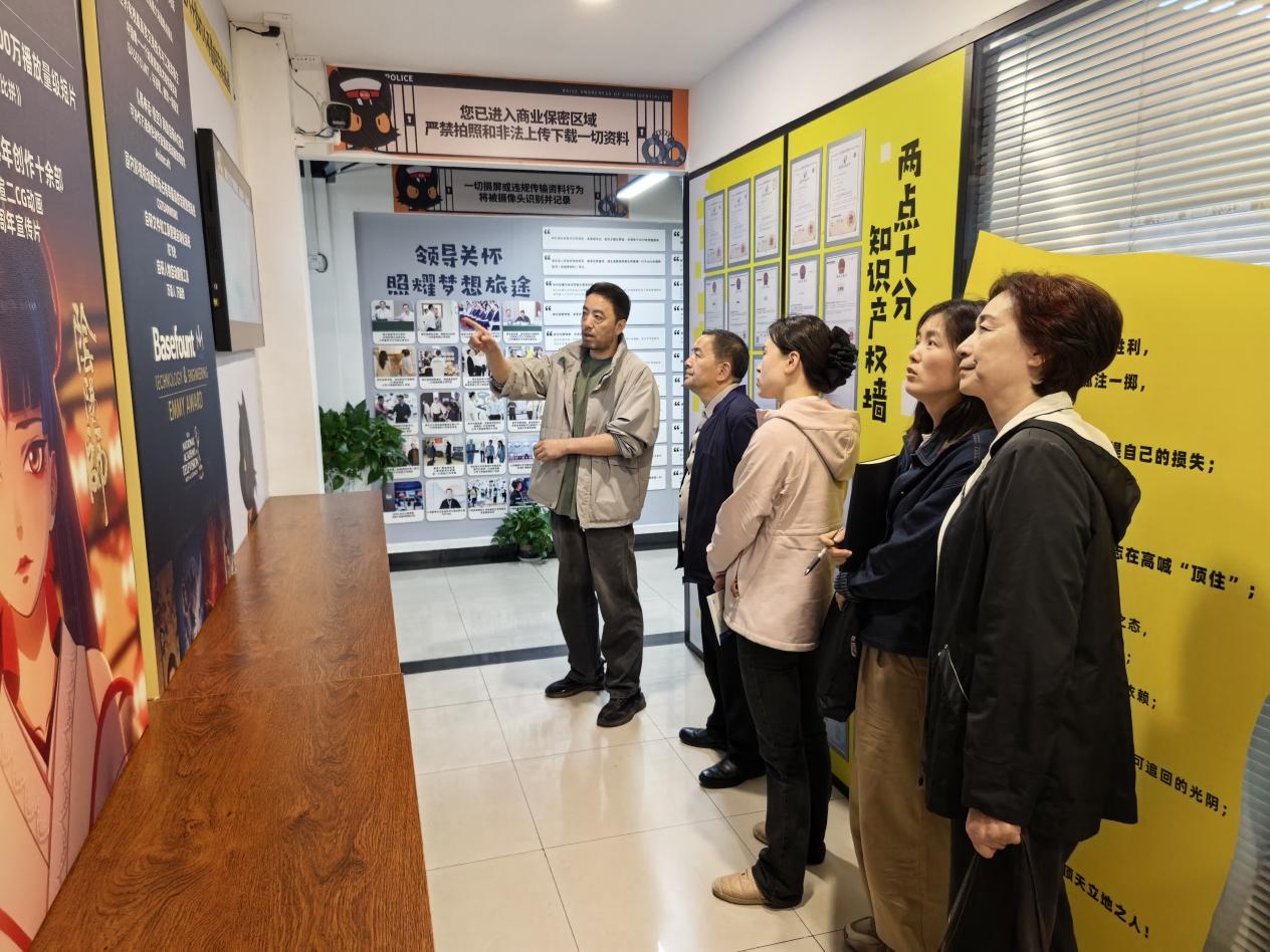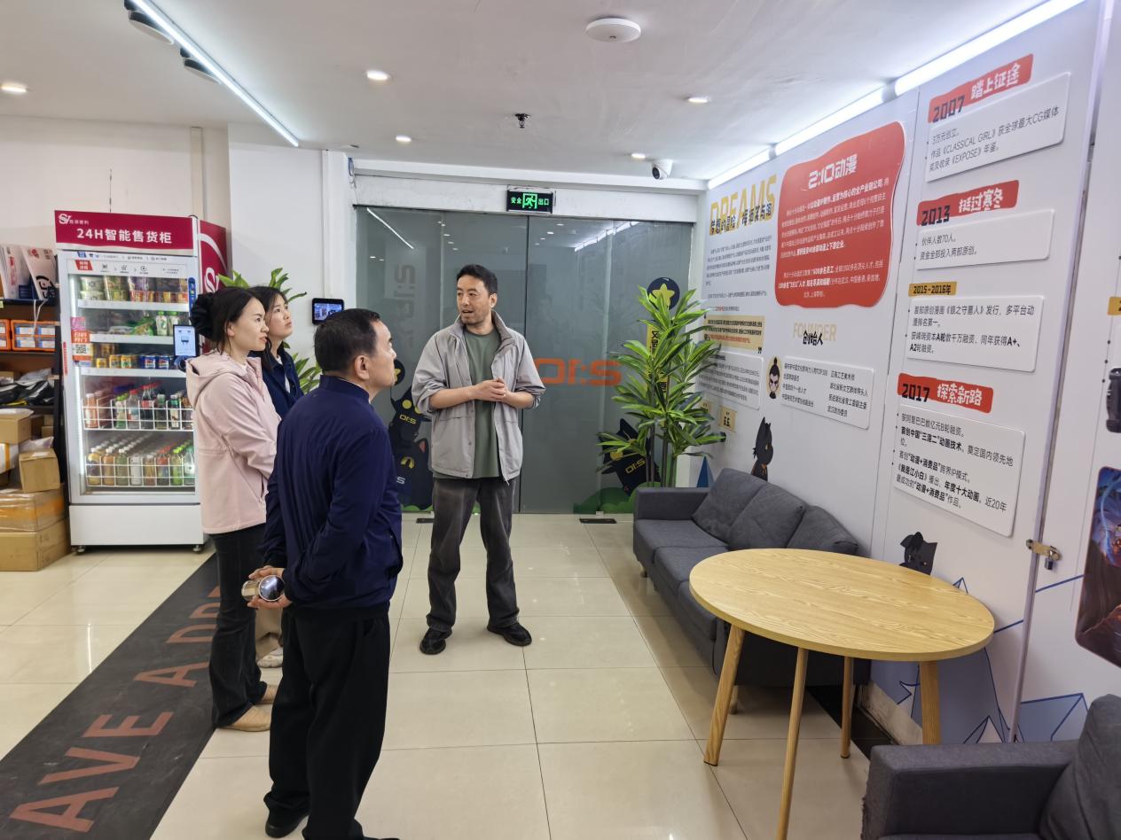 在两点十分公司相关负责人陪同下,宋校长一行参观了企业数字内容生产线与项目研发中心。作为国内动漫文创领域的头部企业,两点十分在高端美术技术工种、真实项目实战、新技术新业态应用方面优势突出,其“企业即课堂”的实战理念与学校推进的应用型教学改革高度契合。