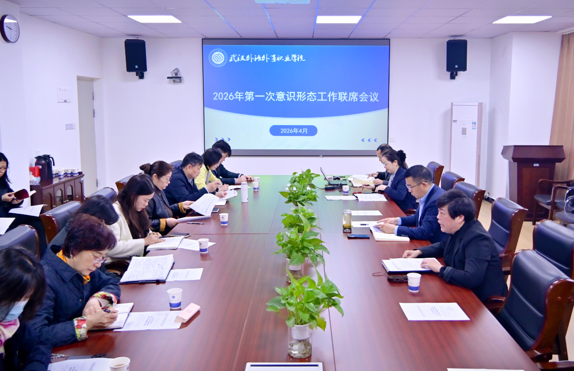 4月22日上午,武汉外语外事职业学院在606会议室召开意识形态工作联席会议2026年第一次会议。校党委书记范雄飞出席会议并讲话,全校各基层单位院长、党组织主要负责人、各职能部门和教辅单位负责人参加会议。党委委员、副校长、宣传部部长刘丹主持会议。