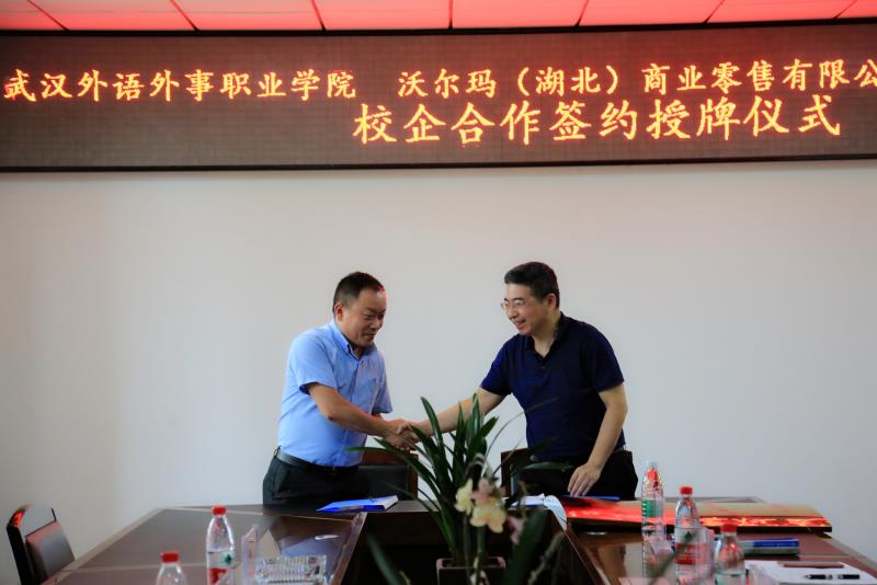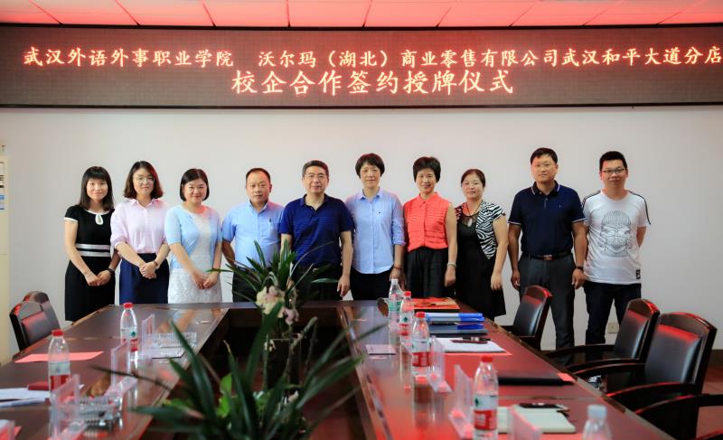 新闻网讯(记者 刘侃)6月26日,我院与沃尔玛(湖北)商业零售有限公司校企合作签约暨授牌仪式在行政楼A315会议室举行。沃尔玛湖北区区域营运总监吴涛、区域人力资源总监顾璐璐,沃尔玛(湖北)商业零售有限公司武汉和平大道分店总经理冯茂波、人力资源经理施响,我院工会主席吴翠红、副院长孙跃出席了签约暨授牌仪式。仪式由旅游与管理学部管理系主任蔡霞主持。