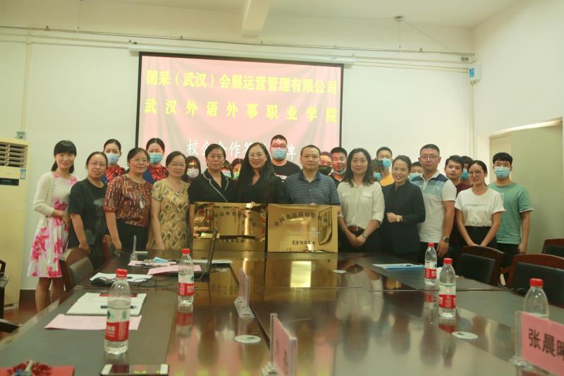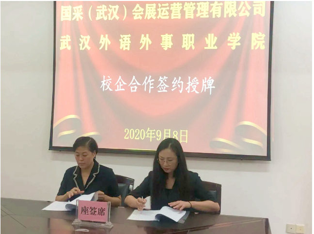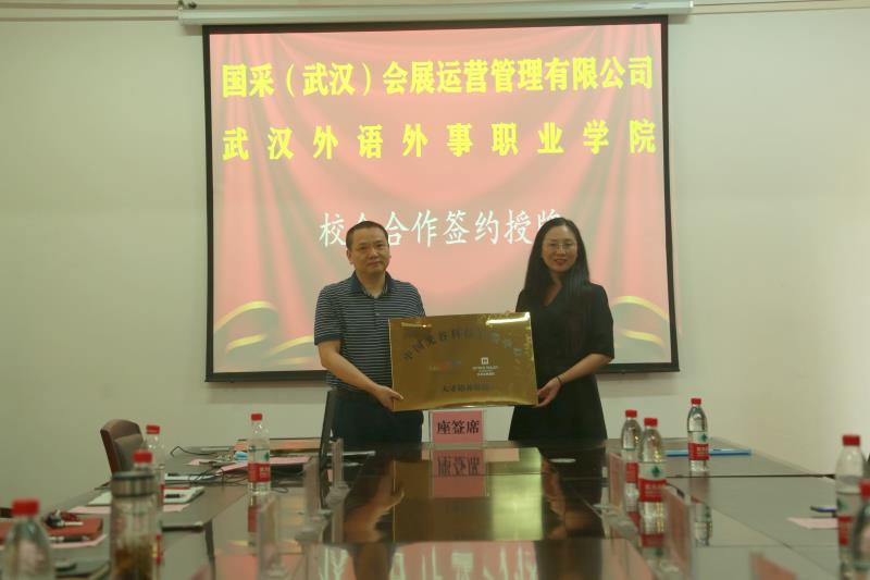 教务处处长张凤秦、旅游与管理学部主任张欣及相关工作人员,国采(武汉)会展运营公司相关工作人员,学生代表参加了签约授牌仪式。