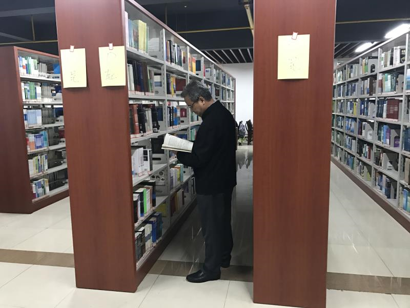 在图书馆一楼中厅,陈建勋认真听取李玉安对图书馆建设情况的汇报,并实地查看了馆藏布局,对文献种类以及数量情况等作了指示,对电子资源和数字平台的发展、定位及建设提出了具体要求,希望图书馆不断提升文献服务能力,为学院师生的教学及科研提供有力支撑。