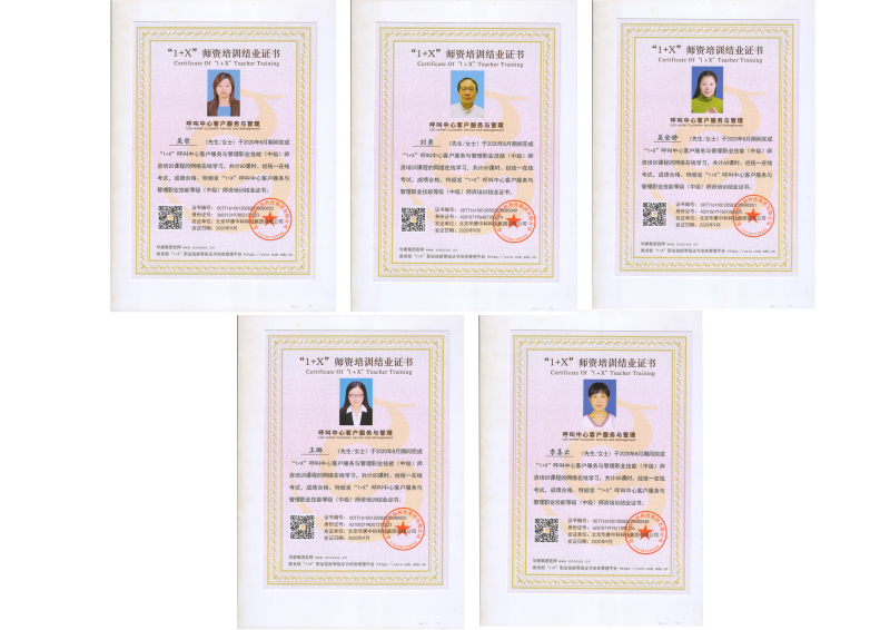 新闻网讯(通讯员王晓宁)为全面落实《国家职业教育改革实施方案》(国发[2019]4号)、教育部等四部门印发《关于在院校实施“学历证书+若干职业技能等级证书制度试点方案”》(职教成[2019]6号)文件精神,高效有序推进呼叫中心客户服务与管理职业技能等级证书实施工作,财经与商贸学部指派教师吴金娇、刘勇、吴哲、李喜云、王璐参加由北京华唐中科科技集团有限公司主办的全国1+X“呼叫中心客户服务与管理”职业技能等级证书师资培训班,并取得师资培训证书。